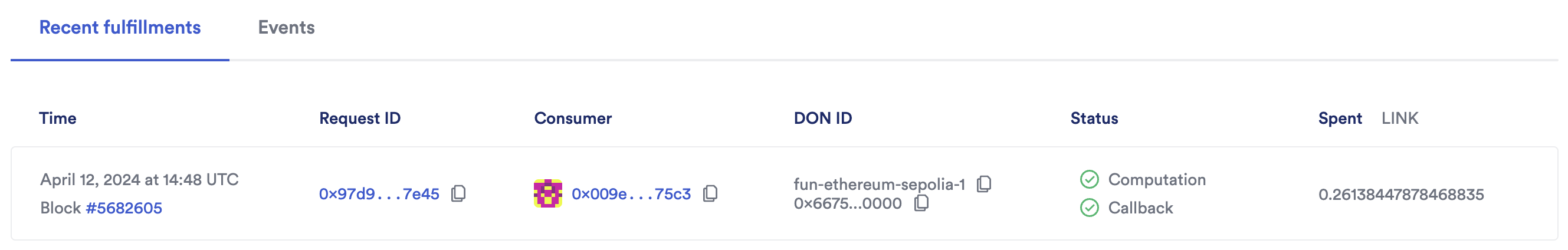 5. Wait for the request to be fulfilled. You can monitor the status of your request on the Chainlink Functions Subscription Manager.